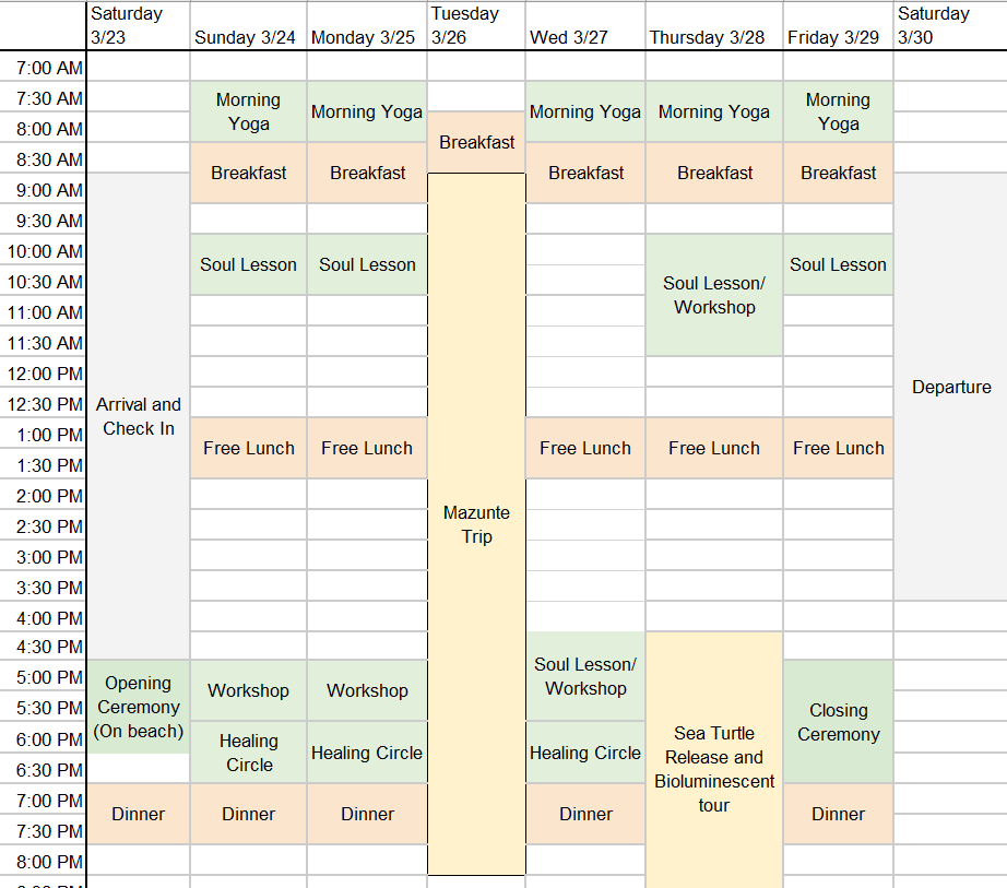 Sample Daily Itinerary*this itinerary is provided as an example. Our daily schedule will be finalized and provided at a future date.